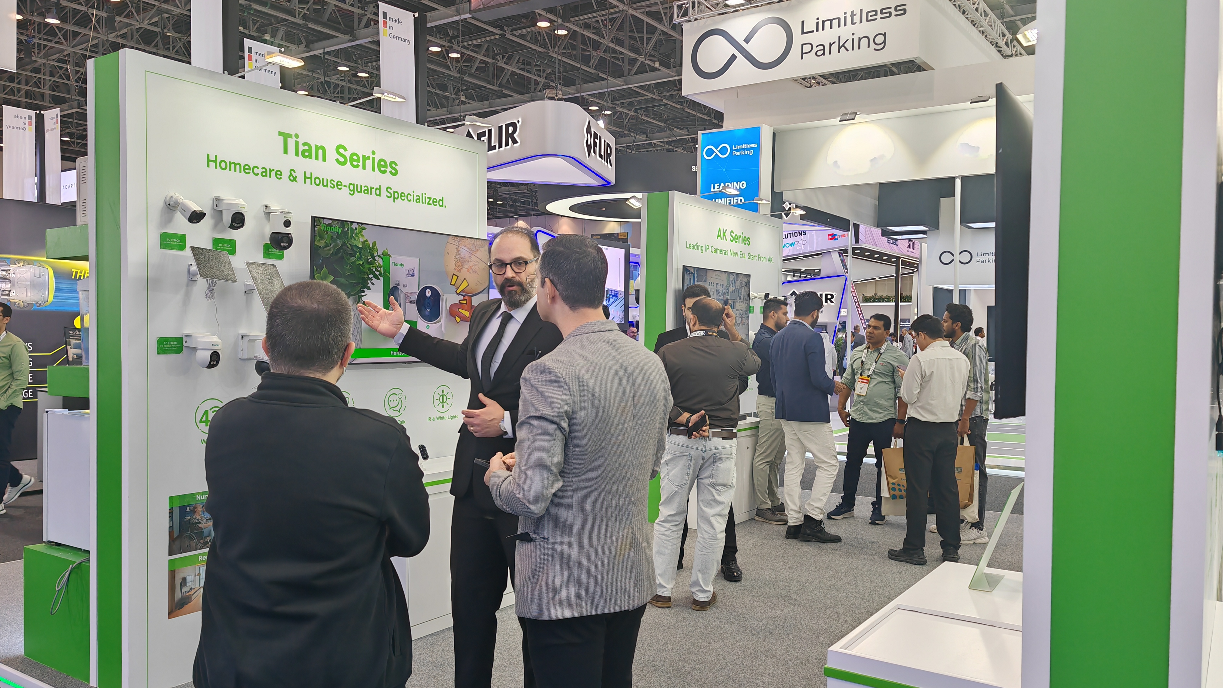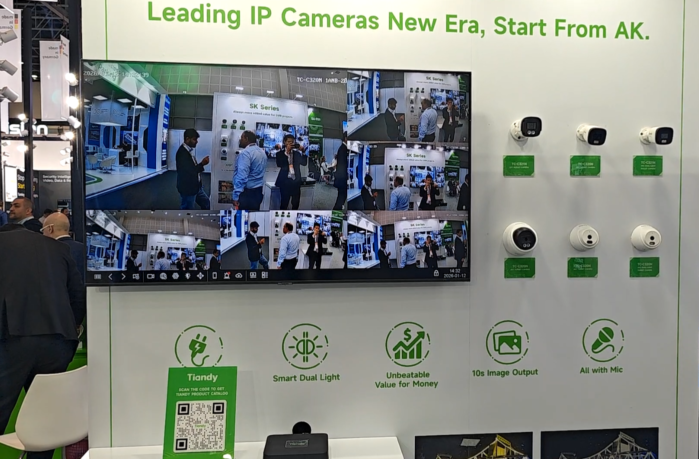 為應(yīng)對全球市場多元化的需求,天地偉業(yè)本次重點展示了60余款核心產(chǎn)品,全面覆蓋家用攝像機、項目型攝像機、AI大模型錄像機、All in One服務(wù)器四大產(chǎn)品線,致力于提供從基礎(chǔ)安防到高端智慧城市建設(shè)的全棧式解決方案。各地客戶結(jié)合自身需求關(guān)注著不同產(chǎn)品,但都不約而同地為天地偉業(yè)的產(chǎn)品實力點贊。歐洲客戶對LK系列在復(fù)雜光線下的出色表現(xiàn)與AI智能分析能力表示贊賞;非洲客戶對無電無網(wǎng)攝像機興趣濃厚;海灣地區(qū)工程師則更關(guān)注SK、LK系列在極端環(huán)境下的穩(wěn)定性以及All in One服務(wù)器的便捷部署。此外,Tian系列及K系列所體現(xiàn)的高效中心化管理能力,也吸引了眾多尋求消費升級與商業(yè)效能提升的客戶。